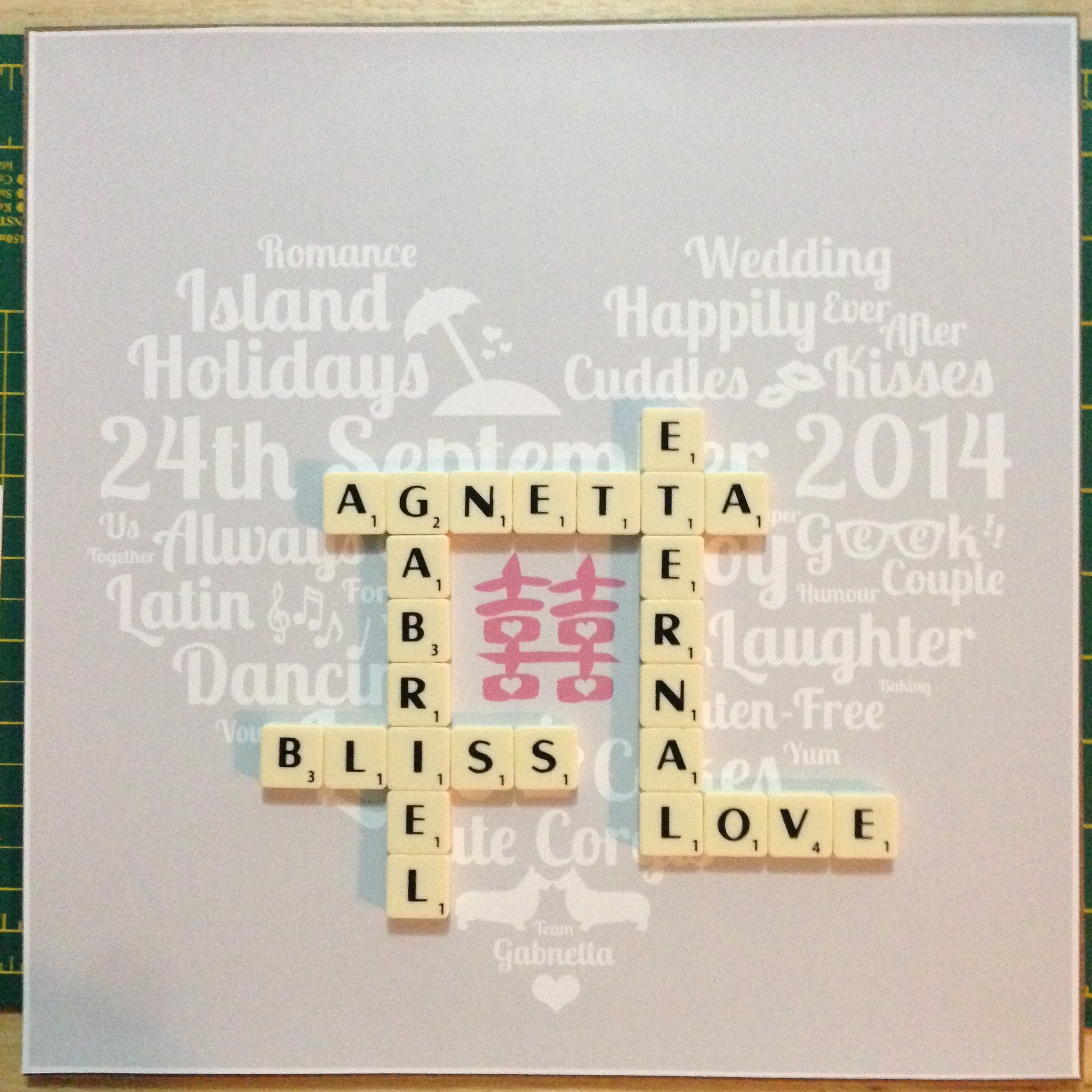 After much deliberation, I thought the best compromise would be something handmade (of course!). I’d seen quite a few bespoke Scrabble-inspired gifts on Etsy, and had been toying with the idea of making one. What with Gabriel and Aggie being being into geeky stuff like that, I thought this would be the perfect opportunity. I’d never done it before, so I wasn’t sure how I was going to pull it off. Plus, there were only a few weeks left to go.