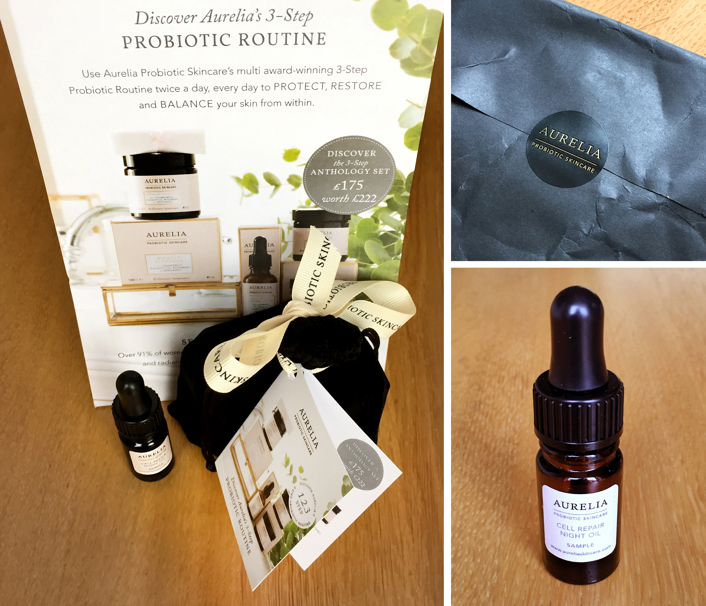 I fared a little better with Aurelia’s 3-Step Probiotic Kit. As mentioned earlier, I’d recently been getting more than my fair share of facebook posts about free stuff. One of the latest was a call-out from Aurelia for Brand Ambassadors. After signing up, you’d be sent the Starter Set (worth £45) for free, and apart from the £3 delivery, the only thing you’ll have to do in return is review the items they send you. As an added bonus, you also become part of their VIP panel which entitles you to perks like discounts and more samples.