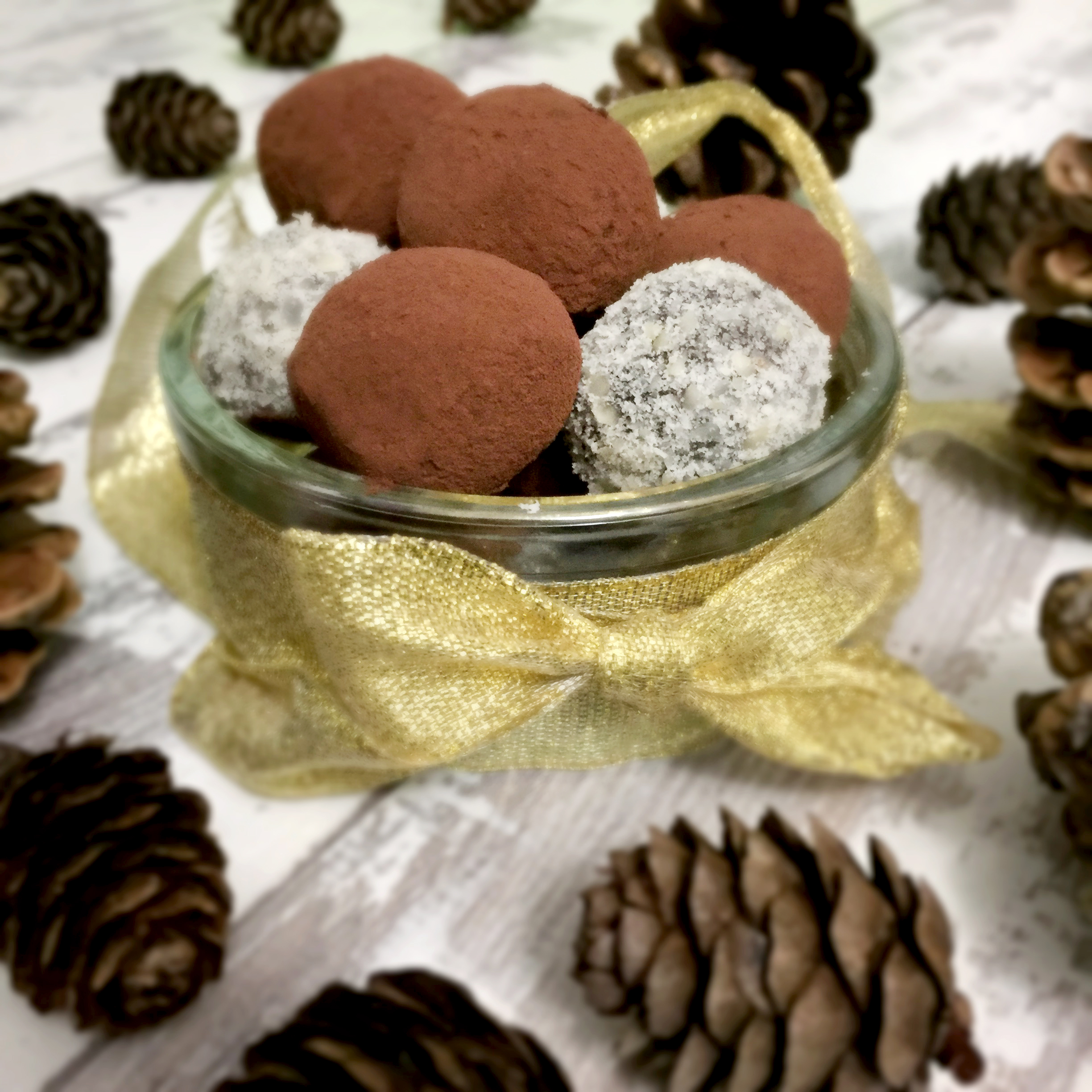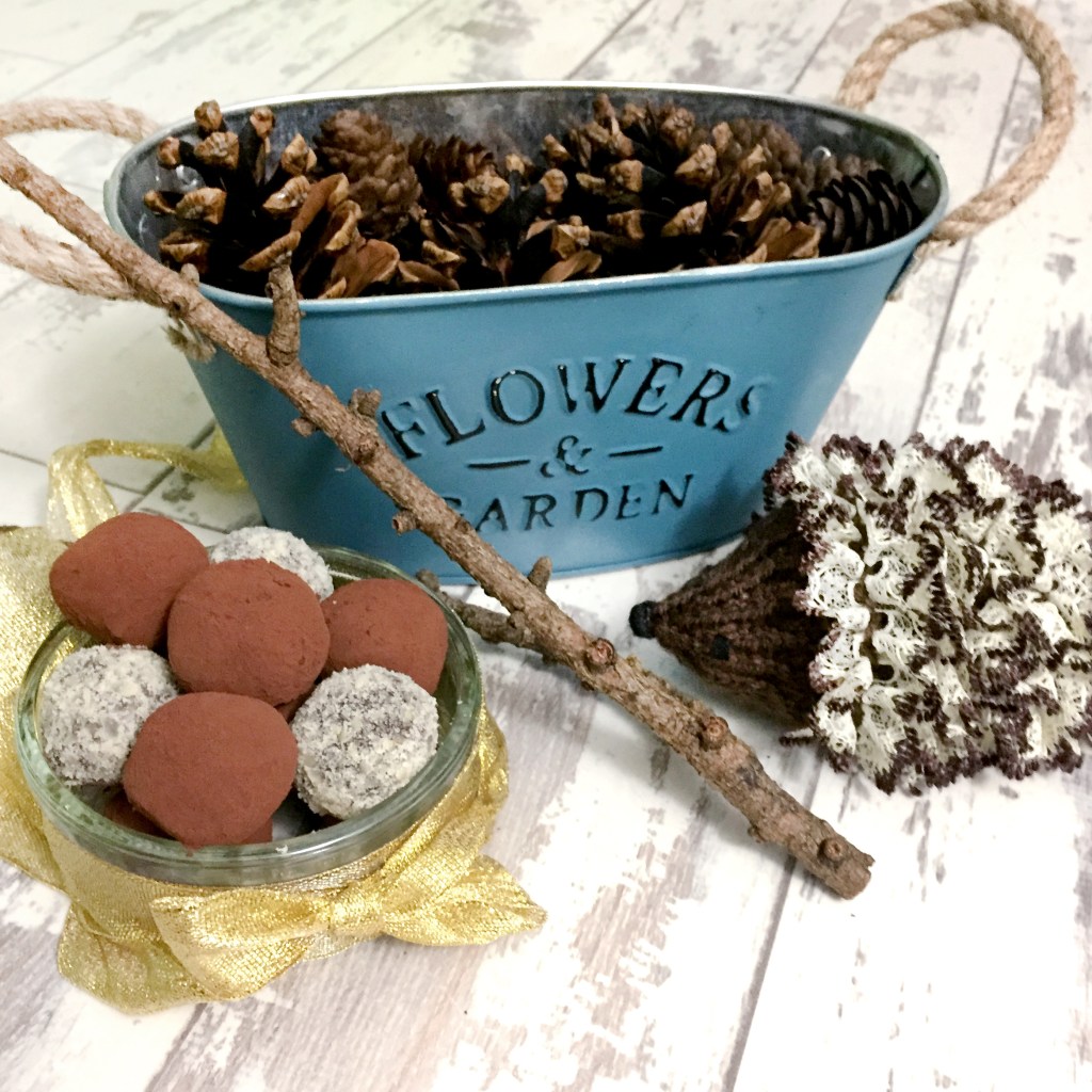 Pine cones fully sanitised and glazed, I could finally relax and enjoy a small batch of truffles I made earlier. What could be more Christmassy than chocolate? Truffles are a simple treat to make, whether for yourself, or friends and family.