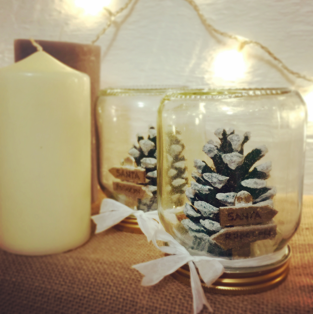 Assembling the snow globe took some doing, but I found air-drying clay to be the best option for the base, particularly in keeping the signpost upright. Take care to keep the clay away from the edges of the jar lid though. You need to leave a bit of room for the jar to screw on properly. After that, all you need is more glitter (I used a mix of large and small flakes), give the jar a bit of a shake, and there you go – a winter scene in miniature! 😀