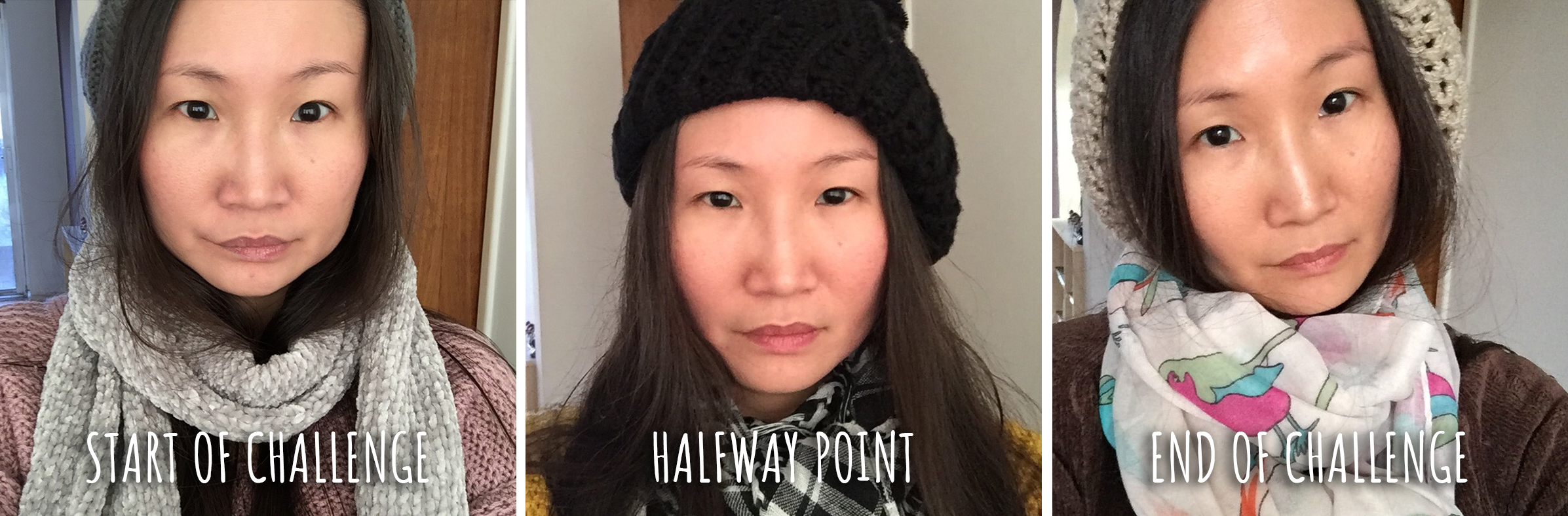 Contrary to what can be seen in the photos, my skin actually had the same colouring and tone (including blotchiness) on all days. I’m not sure why it had a pinker cast in the first two. I’m no expert, but according to my photographer hubby David, it might be to do with my phone’s white balance.