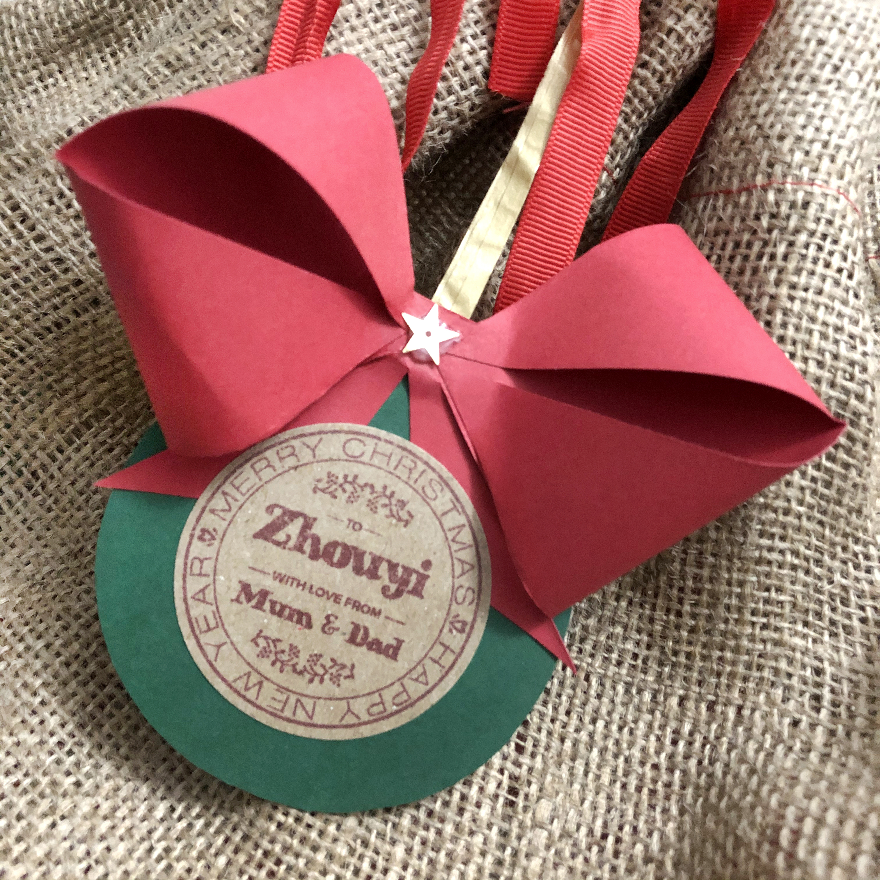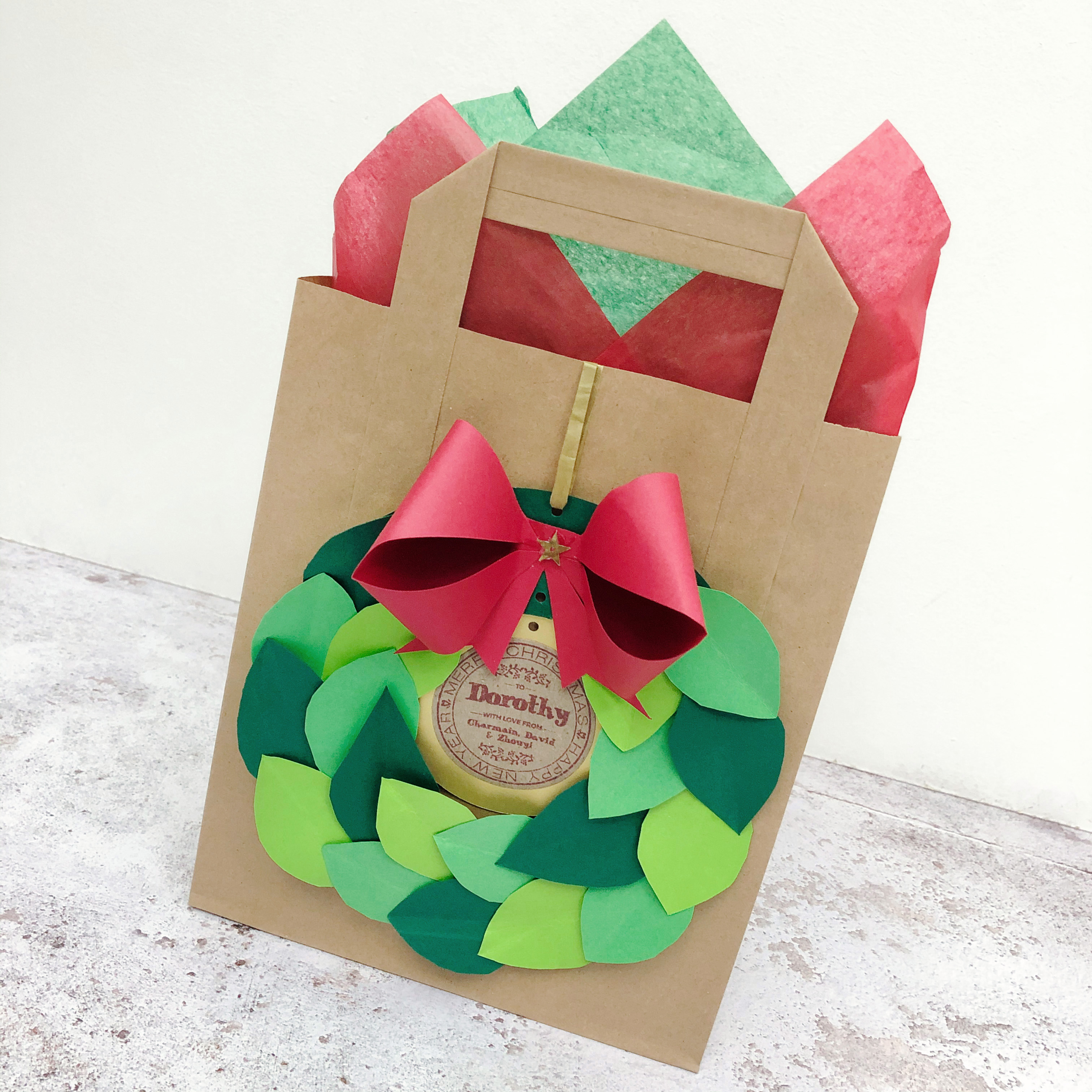 The wreaths (and name labels) are all detachable, so they can also be reused as hanging ornaments, or to decorate gift bags. As I ended up with an extra bow, I made another gift tag for Zhouyi and tied it to her Santa Sack. It’s actually already monogrammed, but a little extra personalisation doesn’t hurt!