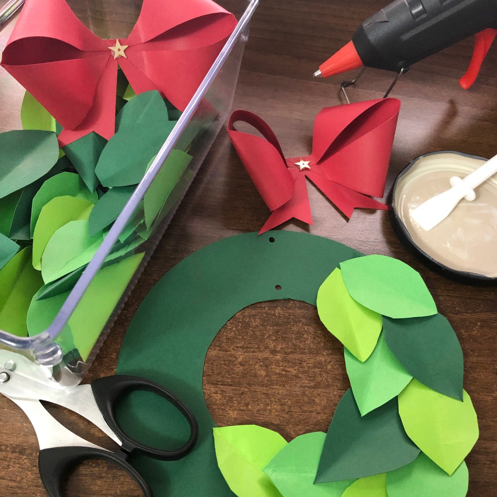You can use fabric/ribbons instead (as per the aforementioned wreath video), but I like the way that paper/card bows 🎀 hold their shape.