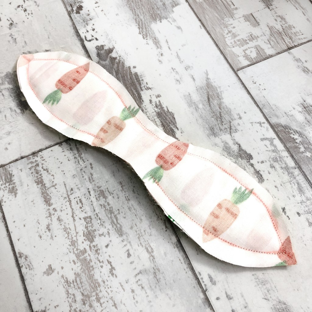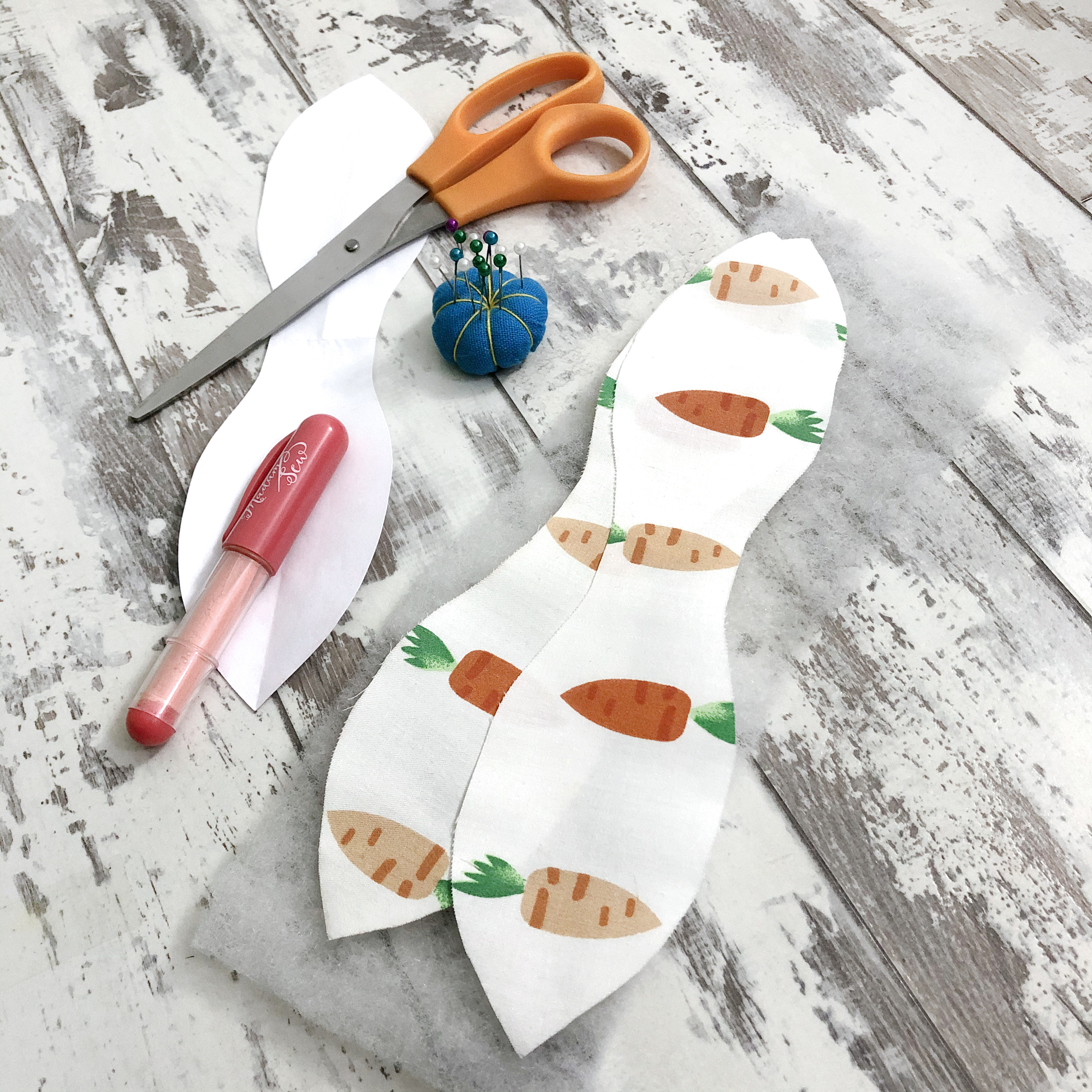 Next, you will need some sort of stiff material between the pieces of fabric to keep the “bunny ears” of the bow from flopping over, especially if you make them longer than per the above-mentioned video.