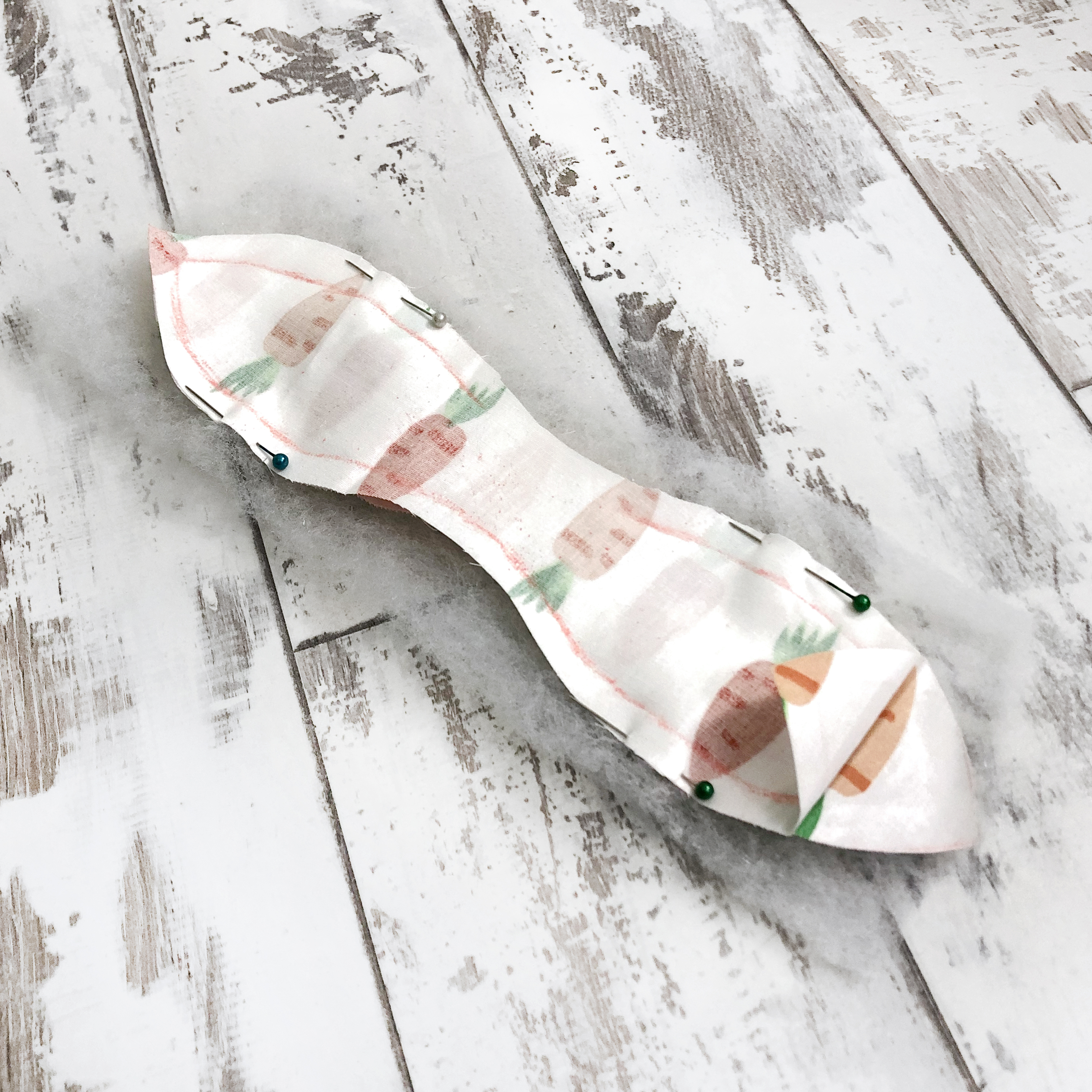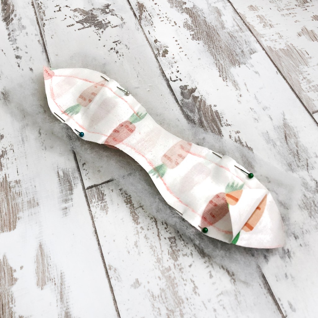 When you sew the edges together, take care to have quite a generous opening/gap if you make the “ears” quite large. Otherwise, you might struggle when it’s time to pull the fabric through in the last step.