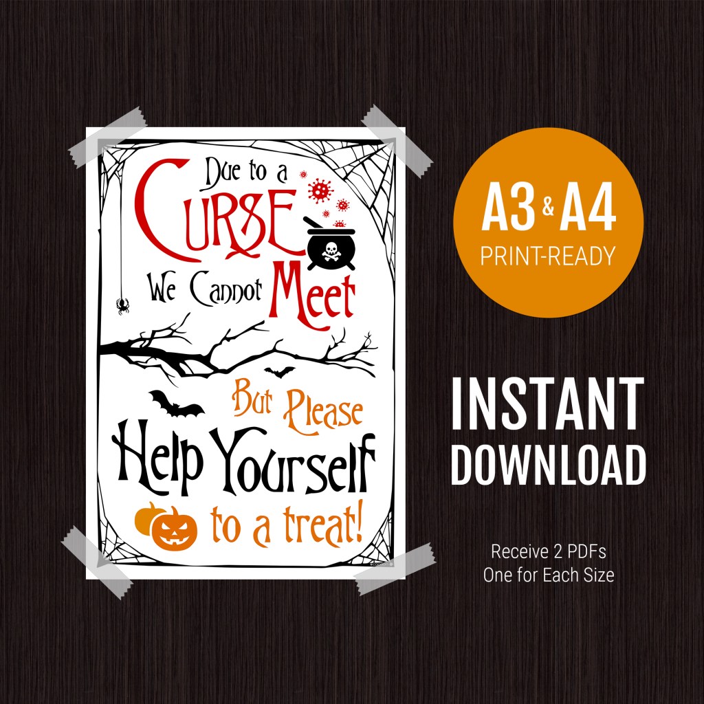 Simply download and print this poster, stick/hang it on your front door or place it on your undoubtedly well-decorated porch. This is perfect for social distancing encounters of the spooky kind. 👻 Now all that remains is for you to get the treats ready! 🍬🍫
