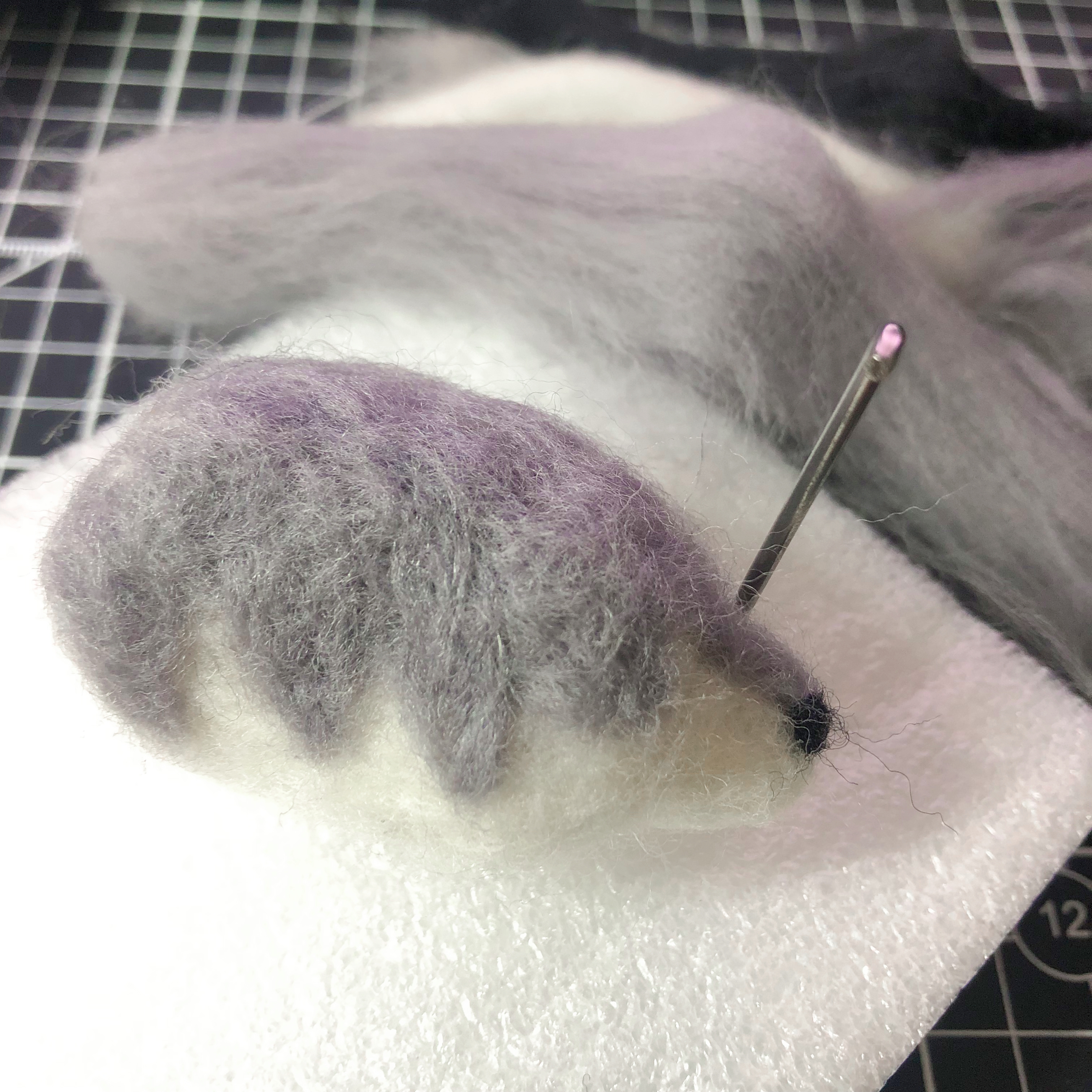 If I had to name this piece of work, he’d be called Ouch! The reason will become clear in a moment. Sadly, it’s not up to me to christen him since he was a gift to my husband who has inexplicably named him Pint. 🐶 Maybe it’s because he is so small. Pint is indeed a good boy, even if he did draw blood during his conception. Not on account of his teeth (because he has none) but due to the felting needle getting into a few disagreements with my fingers. Yes, leather guards/cots did come with the kit, but they were very stiff and affected my dexterity so I removed them. 🤷🏻♀️